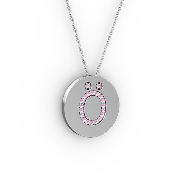 Pembe kuvars 8 ayar beyaz altın kolye (40 cm beyaz altın rolo zincir)
