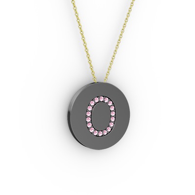 Pembe kuvars 925 ayar siyah rodyum kaplama gümüş kolye (40 cm gümüş rolo zincir)