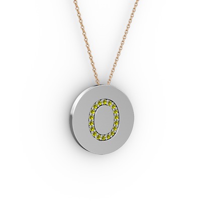 Peridot 8 ayar beyaz altın kolye (40 cm gümüş rolo zincir)