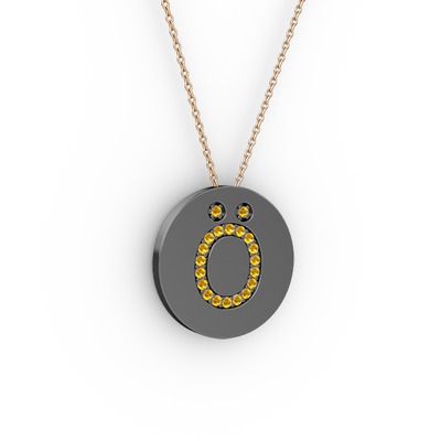 Sitrin 925 ayar siyah rodyum kaplama gümüş kolye (40 cm gümüş rolo zincir)