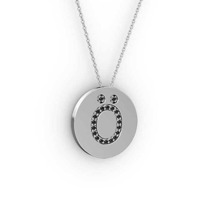 Siyah zirkon 925 ayar gümüş kolye (40 cm beyaz altın rolo zincir)