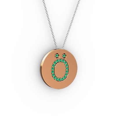 Yeşil kuvars 8 ayar rose altın kolye (40 cm gümüş rolo zincir)