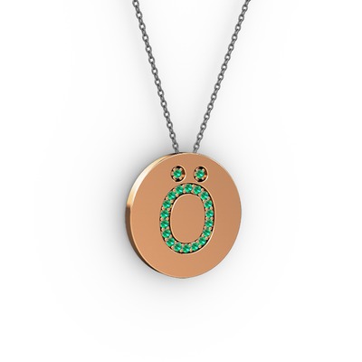 Yeşil kuvars 8 ayar rose altın kolye (40 cm gümüş rolo zincir)