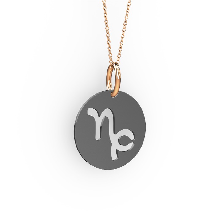 925 ayar siyah rodyum kaplama gümüş kolye (40 cm rose altın rolo zincir)
