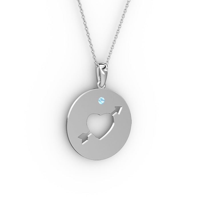 Akuamarin 18 ayar beyaz altın kolye (40 cm gümüş rolo zincir)