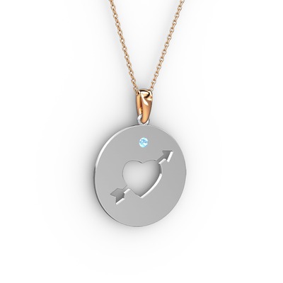 Akuamarin 18 ayar beyaz altın kolye (40 cm rose altın rolo zincir)