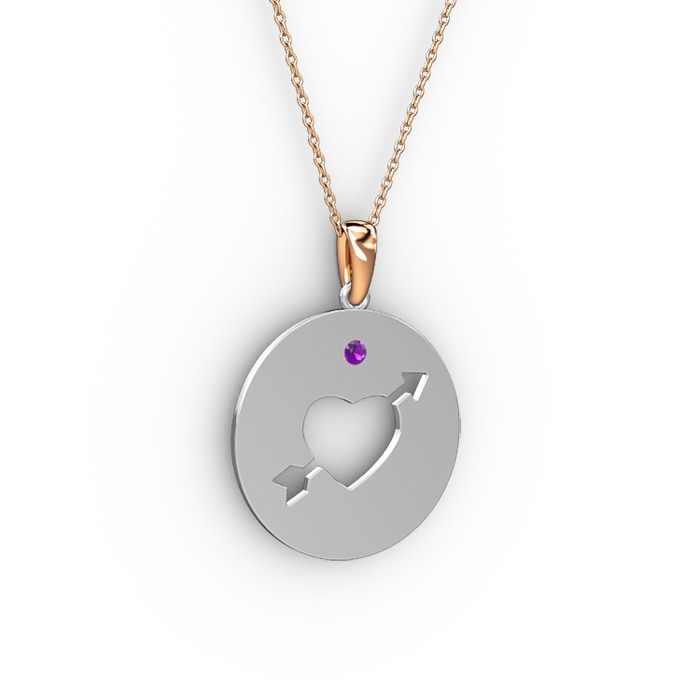 Ametist 18 ayar beyaz altın kolye (40 cm rose altın rolo zincir)