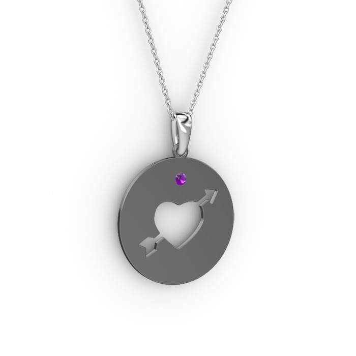 Ametist 925 ayar siyah rodyum kaplama gümüş kolye (40 cm beyaz altın rolo zincir)