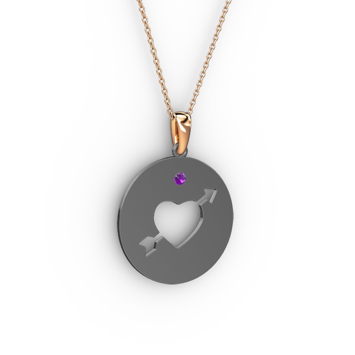 Ametist 925 ayar siyah rodyum kaplama gümüş kolye (40 cm gümüş rolo zincir)