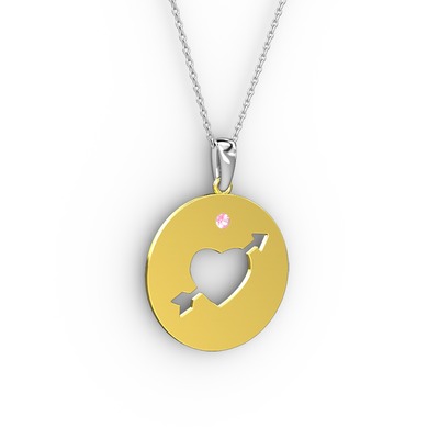 Pembe kuvars 14 ayar altın kolye (40 cm beyaz altın rolo zincir)