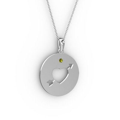 Peridot 18 ayar beyaz altın kolye (40 cm beyaz altın rolo zincir)
