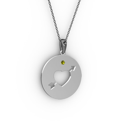 Peridot 8 ayar beyaz altın kolye (40 cm gümüş rolo zincir)