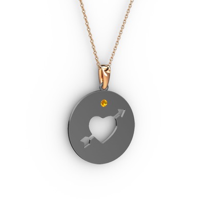 Sitrin 925 ayar siyah rodyum kaplama gümüş kolye (40 cm rose altın rolo zincir)