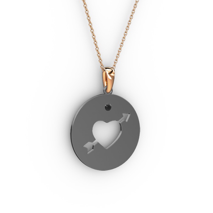 Siyah zirkon 925 ayar siyah rodyum kaplama gümüş kolye (40 cm rose altın rolo zincir)