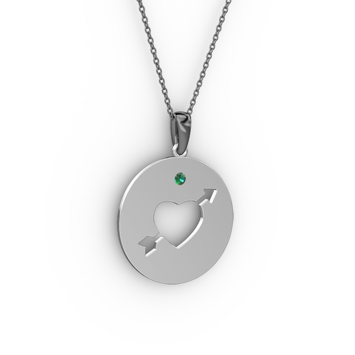Yeşil kuvars 18 ayar beyaz altın kolye (40 cm gümüş rolo zincir)