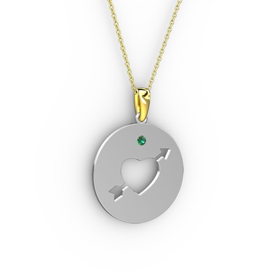Yeşil kuvars 18 ayar beyaz altın kolye (40 cm gümüş rolo zincir)