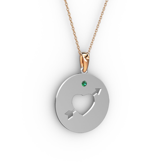 Yeşil kuvars 18 ayar beyaz altın kolye (40 cm rose altın rolo zincir)