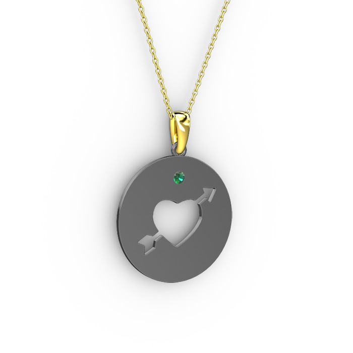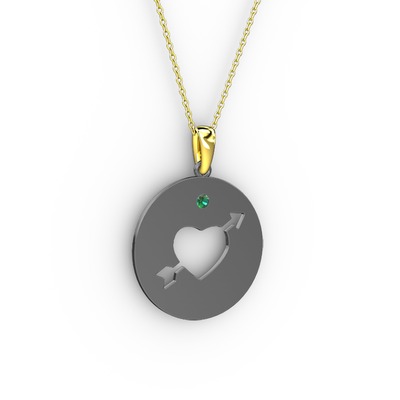 Yeşil kuvars 925 ayar siyah rodyum kaplama gümüş kolye (40 cm altın rolo zincir)