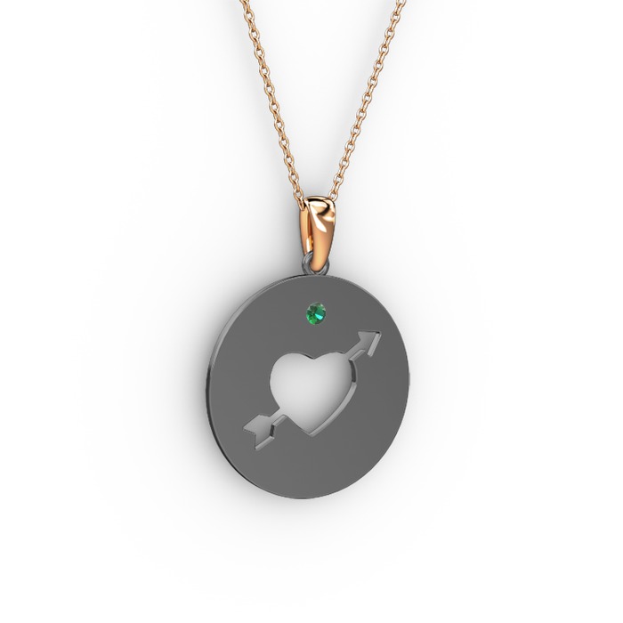 Yeşil kuvars 925 ayar siyah rodyum kaplama gümüş kolye (40 cm rose altın rolo zincir)