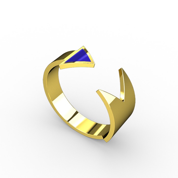 925 ayar altın kaplama gümüş yüzük (Mavi mineli)