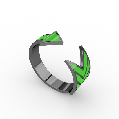 925 ayar siyah rodyum kaplama gümüş yüzük (Neon yeşil mineli)