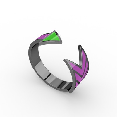 925 ayar siyah rodyum kaplama gümüş yüzük (Neon yeşil mineli)