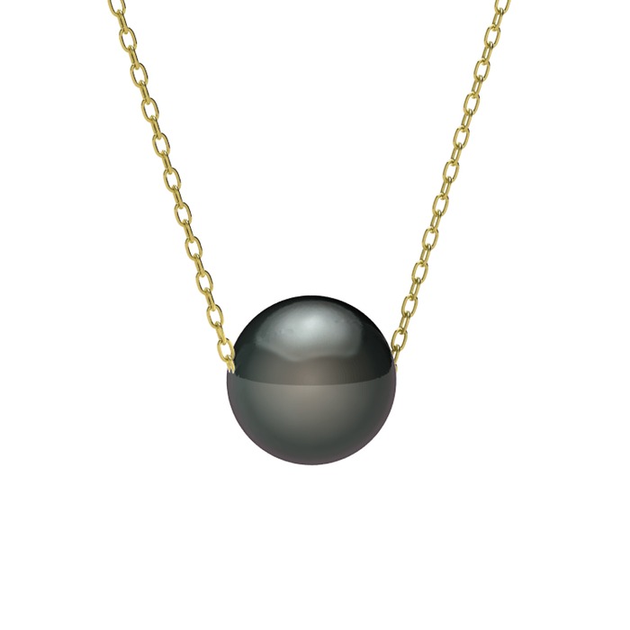Siyah inci kolye (40 cm gümüş rolo zincir)