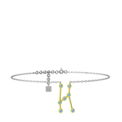 Akuamarin 8 ayar altın bilezik (20 cm beyaz altın rolo zincir)