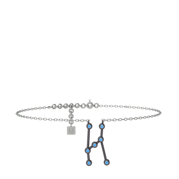 Akuamarin 925 ayar siyah rodyum kaplama gümüş bilezik (20 cm beyaz altın rolo zincir)