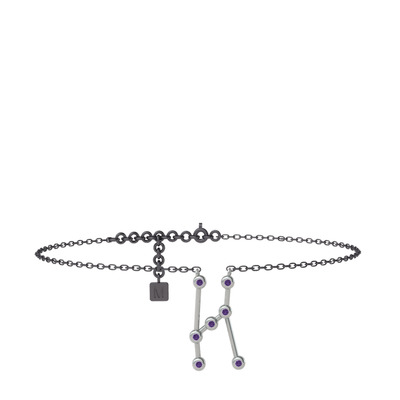 Ametist 18 ayar beyaz altın bilezik (20 cm gümüş rolo zincir)