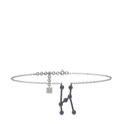 Ametist 925 ayar siyah rodyum kaplama gümüş bilezik (20 cm beyaz altın rolo zincir)