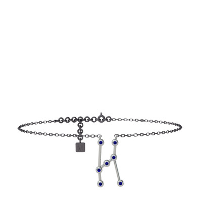 Lab safir 14 ayar beyaz altın bilezik (20 cm gümüş rolo zincir)
