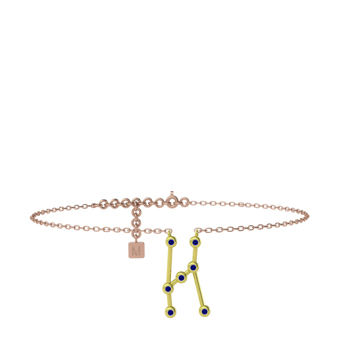 Lab safir 8 ayar altın bilezik (20 cm rose altın rolo zincir)