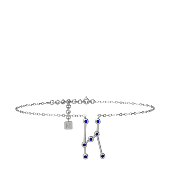 Lab safir 925 ayar gümüş bilezik (20 cm beyaz altın rolo zincir)