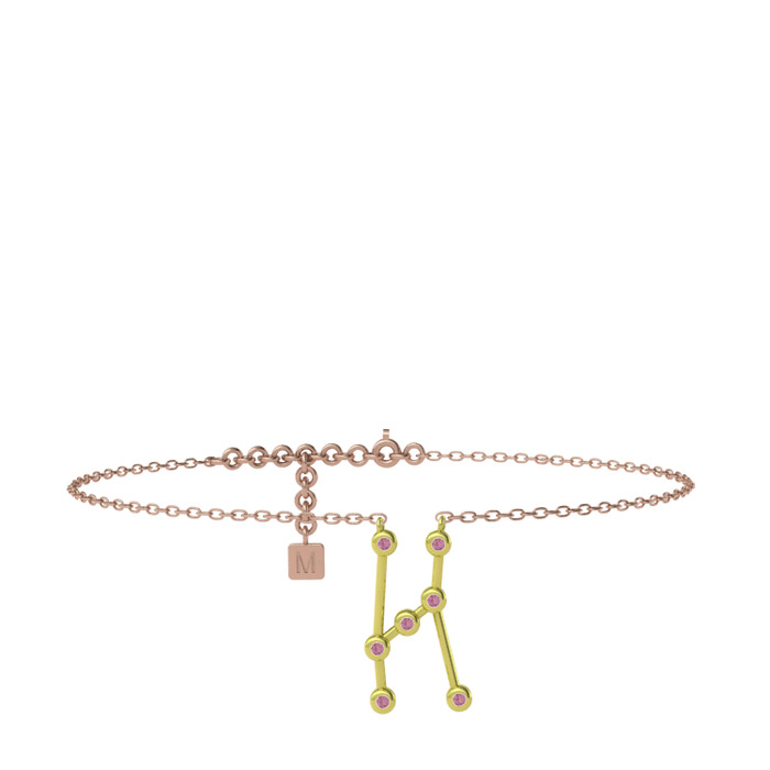 Pembe kuvars 18 ayar altın bilezik (20 cm gümüş rolo zincir)
