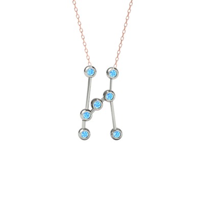 Akuamarin 8 ayar beyaz altın kolye (40 cm rose altın rolo zincir)
