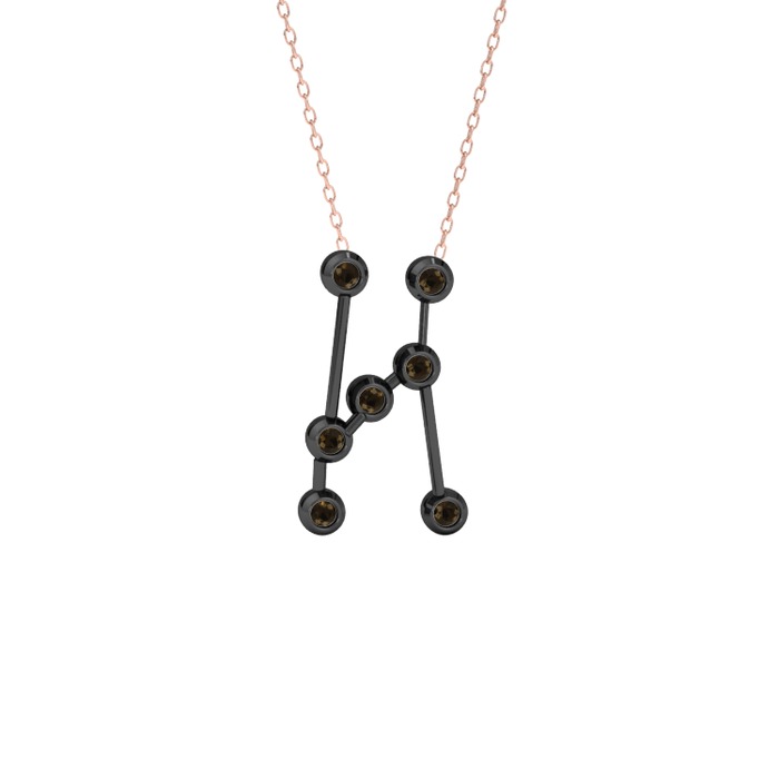 Dumanlı kuvars 925 ayar siyah rodyum kaplama gümüş kolye (40 cm rose altın rolo zincir)