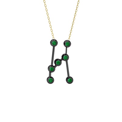 Kök zümrüt 925 ayar siyah rodyum kaplama gümüş kolye (40 cm altın rolo zincir)