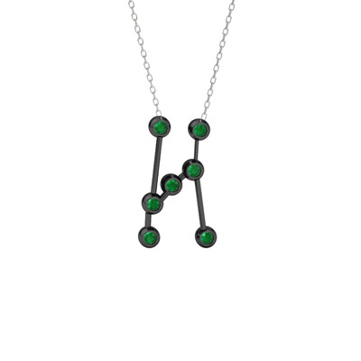 Kök zümrüt 925 ayar siyah rodyum kaplama gümüş kolye (40 cm beyaz altın rolo zincir)