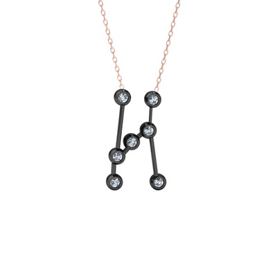 Swarovski 925 ayar siyah rodyum kaplama gümüş kolye (40 cm rose altın rolo zincir)