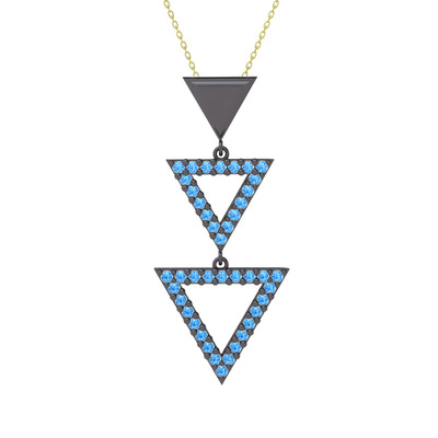 Akuamarin 925 ayar siyah rodyum kaplama gümüş kolye (40 cm altın rolo zincir)