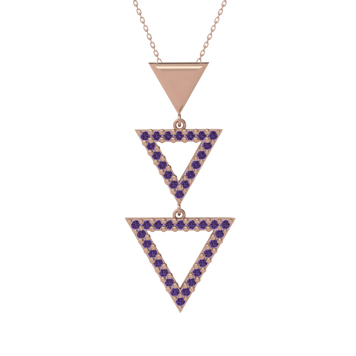 Ametist 14 ayar rose altın kolye (40 cm rose altın rolo zincir)