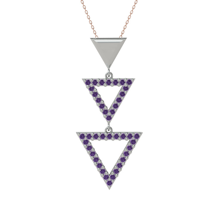 Ametist 8 ayar beyaz altın kolye (40 cm rose altın rolo zincir)