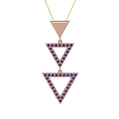 Ametist 8 ayar rose altın kolye (40 cm altın rolo zincir)
