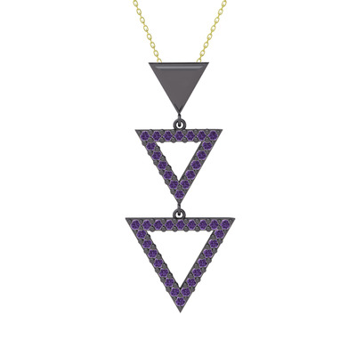 Ametist 925 ayar siyah rodyum kaplama gümüş kolye (40 cm gümüş rolo zincir)