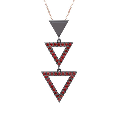 Garnet 925 ayar siyah rodyum kaplama gümüş kolye (40 cm rose altın rolo zincir)