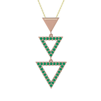Kök zümrüt 18 ayar rose altın kolye (40 cm altın rolo zincir)