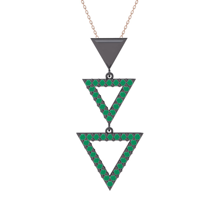 Kök zümrüt 925 ayar siyah rodyum kaplama gümüş kolye (40 cm rose altın rolo zincir)