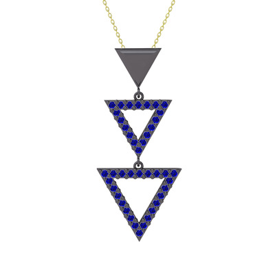 Lab safir 925 ayar siyah rodyum kaplama gümüş kolye (40 cm altın rolo zincir)