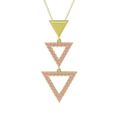 Pembe kuvars 8 ayar altın kolye (40 cm gümüş rolo zincir)